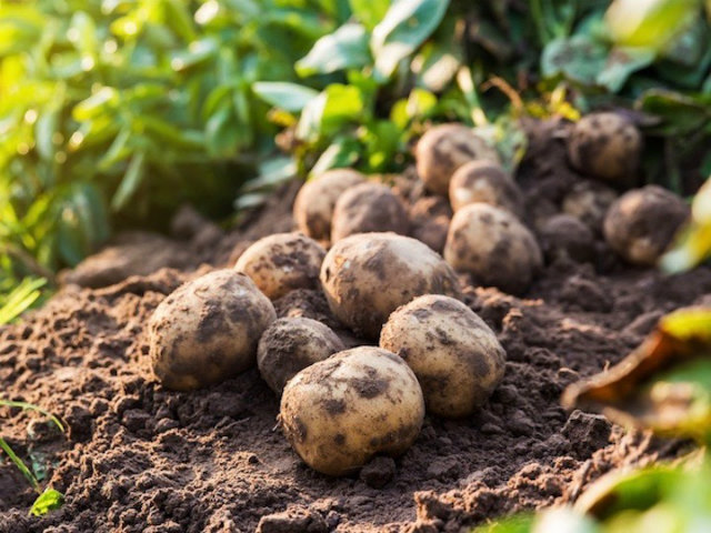 豊かな土壌から元気に実ったジャガイモやサツマイモ、ニンニクなどを